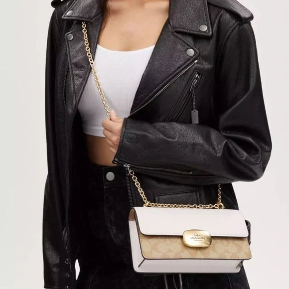 Coach Eliza Flap Crossbody and shoulder Bag In Signature Canvas khaki/chalk NWT